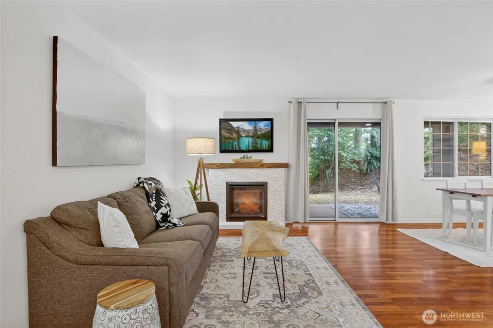 Beautifully updated ground-floor 3BR/2BA condo in Mill Creek’s sought-after Country Club Estates! This spacious home offers a bright, open layout with hardwood, tile, and plush carpet throughout. The remodeled kitchen features granite counters, stainless appliances, custom cabinetry, and a handy pull-out pantry. The inviting living and dining areas flow to a serene patio facing a lush greenbelt. Retreat to the generous primary suite with double closets and updated full bath. Enjoy a private laundry room, ample storage, and reserved covered parking. Community amenities include pools, clubhouse, fitness center, sauna, racquetball, sport courts, playground, trails, & manicured grounds. Close to Town Center, parks, golf, & top Everett schools!